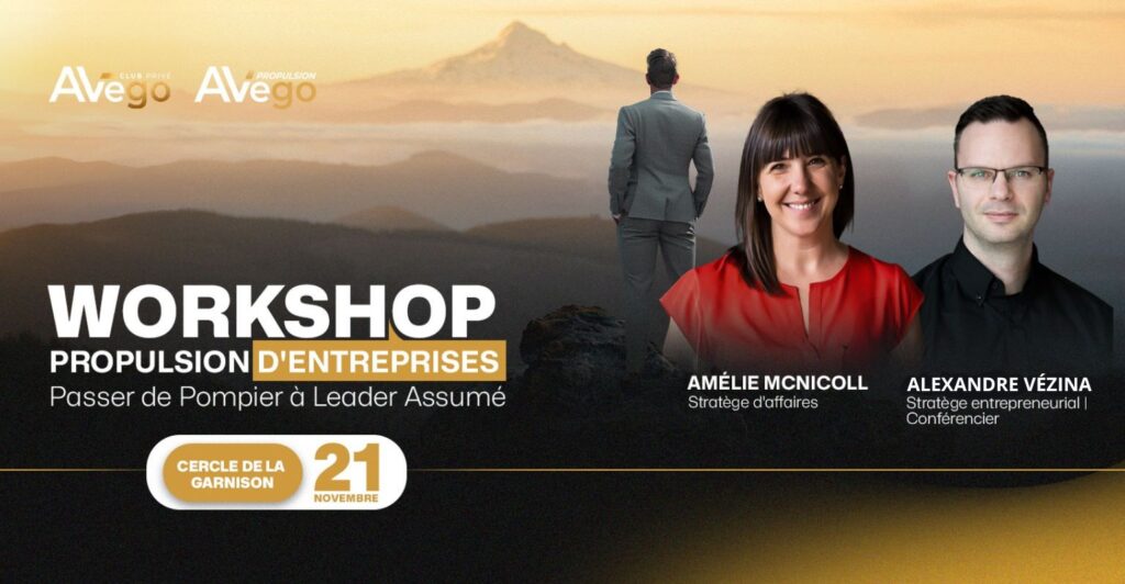Les membres d’Avego se réunissent pour le Workshop Propulsion d’Entreprise , Montréal. Cet événement unique combine Coaching, sessions de Mastermind, accès à des entrepreneurs chevronnés et, bien sûr, l’accès à un réseau d’entrepreneurs en pleine croissance. La communauté Avego se distingue par la qualité de ses membres, tous expérimentés et leaders dans leur domaine.
